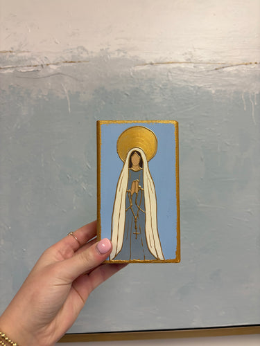 Our Lady on wood - blue- - Hope’s Blessed Mess