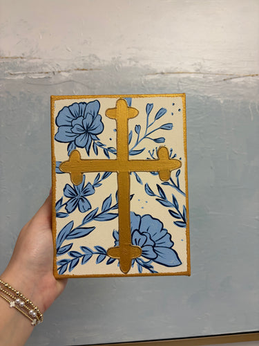 Gold cross on floral canvas - Hope’s Blessed Mess