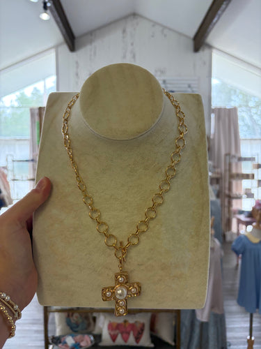 Large pearl cross necklace - The Gilded Mosquito by Lisa Leger