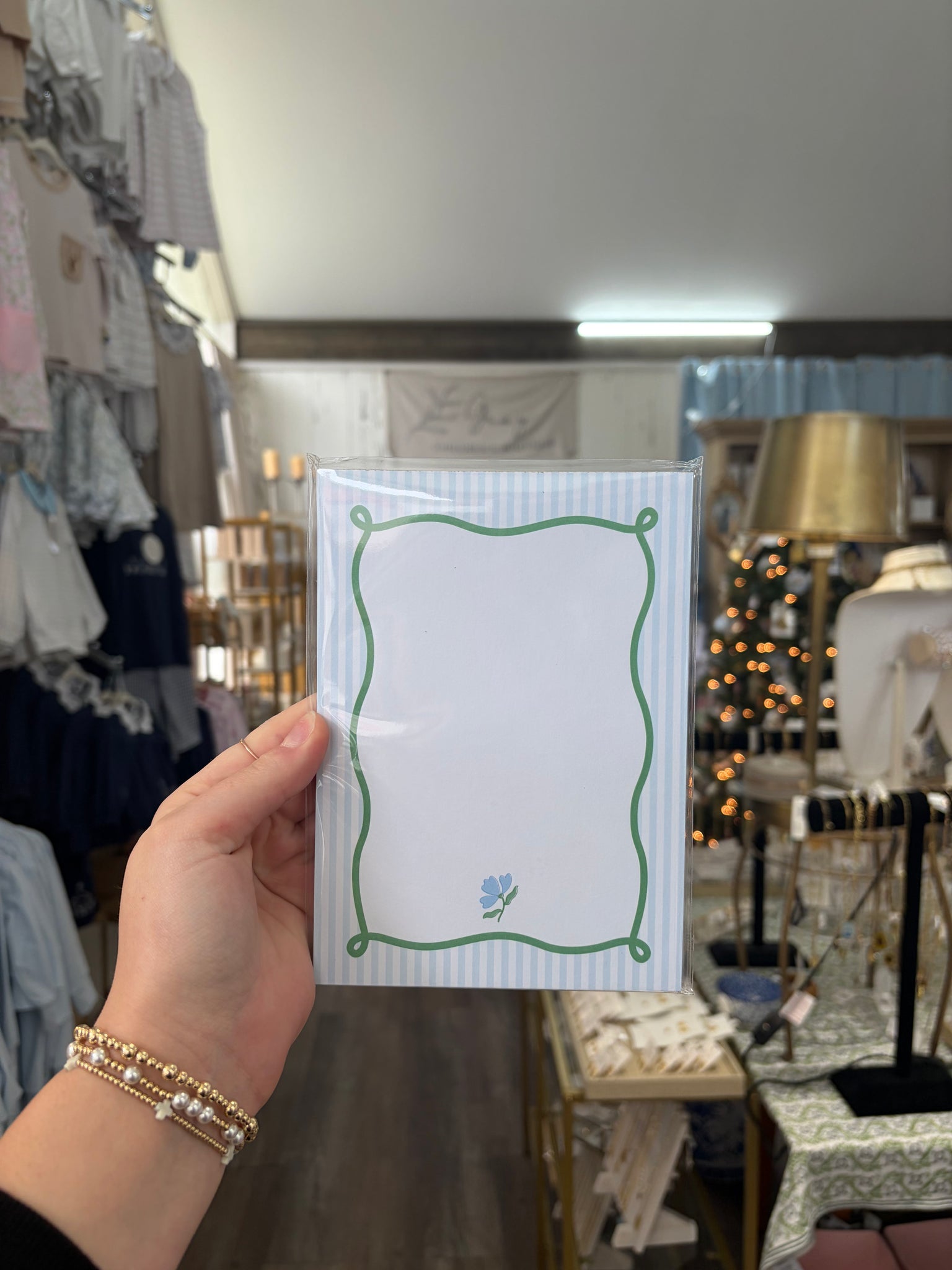 Blue striped notepad- Stretched Out Designs