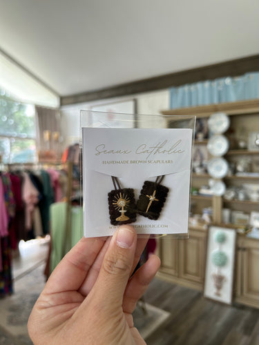 Mini brown scapular with Monstrance- Seaux Catholic