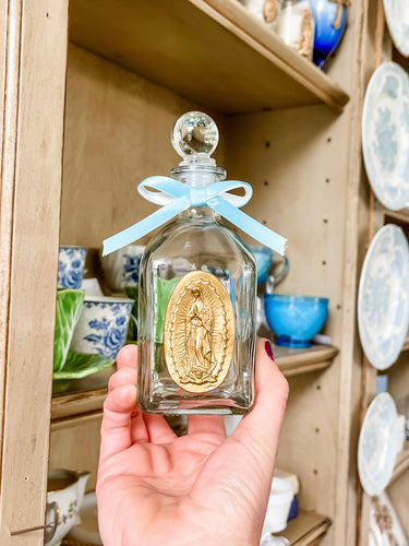 Our Lady of Guadaloupe holy water bottle with ribbon (ribbon color may vary) - Mary Abraham Collective