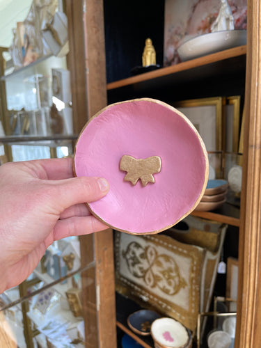 Pink and gold bow trinket dish -Stretched Out Designs By Chelse Breaux