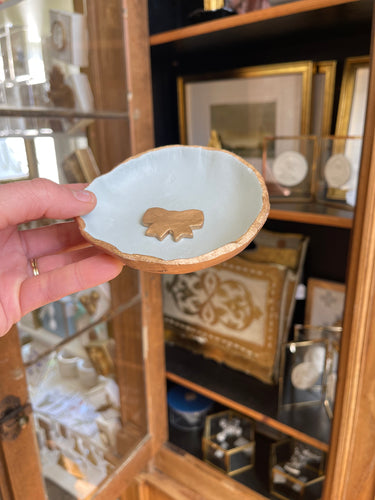 Gray blue bow trinket dish -Stretched Out Designs By Chelse Breaux