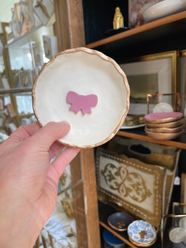 White and pink bow trinket dish -Stretched Out Designs By Chelse Breaux