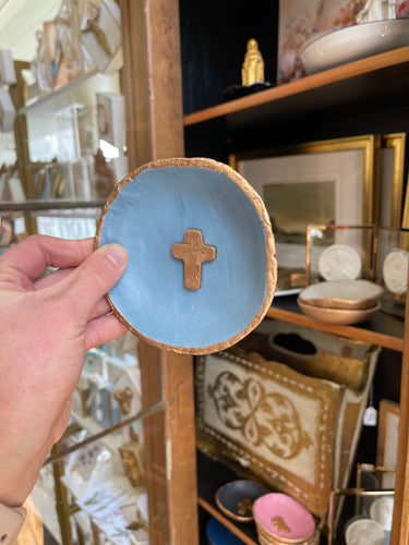 Blue with cross trinket dish -Stretched Out Designs By Chelse Breaux