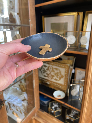 Black with cross trinket dish -Stretched Out Designs By Chelse Breaux