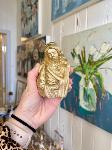 Vintage frame Sacred Heart medal on trimmed gold leaf wood- Christina Yeager Designs