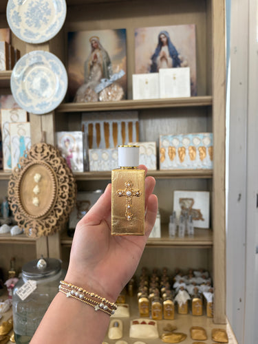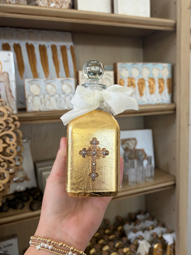 Large holy water bottle gold & diamond cross w/bow - By JLM Designs