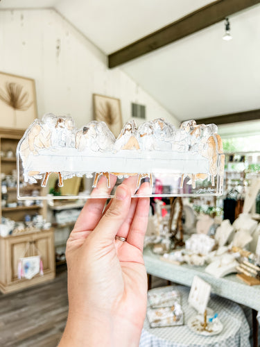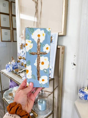 White flowers with textured gold leaf cross- Stretched Out Designs by Chelse Breaux