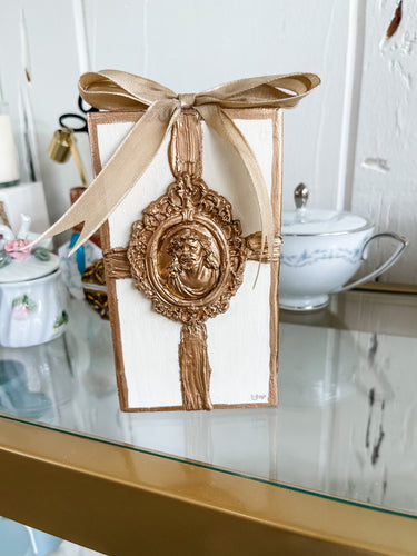 6x6 White Cavas with Gold Trim and Mary Intaglio-Stretched Out Designs By Chelse Breaux