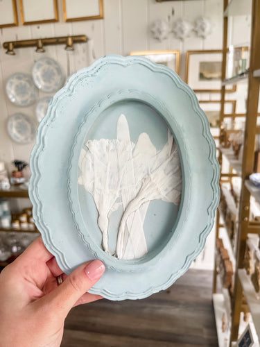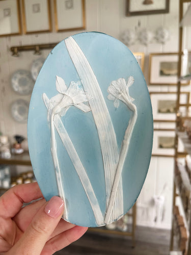 Large Light Blue Oval Daffodil Frame + Hanger-YSF Intaglio Art