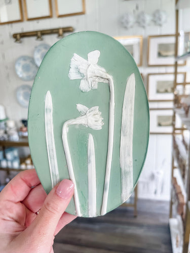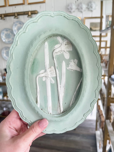 Medium Green Oval Daffodil Frame + Hanger-YSF Intaglio Art