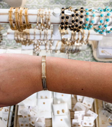 5 wire 3 gold flat 2 silver twist - bracelet- Q’s Jewelry Designd