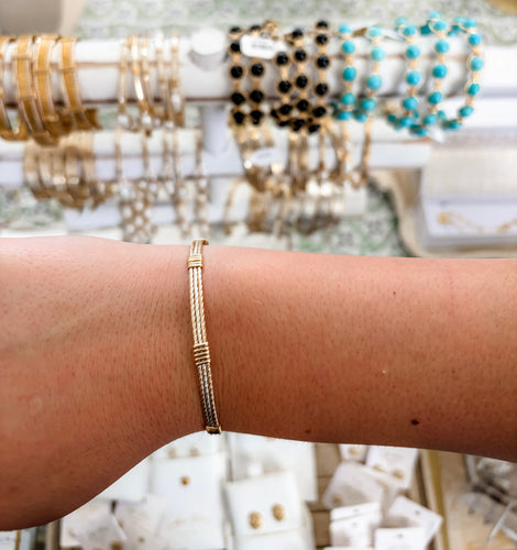 3 wire -2 gold twisted 1 middle silver twisted bracelet- Q’s Jewelry Design