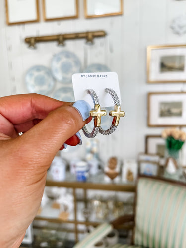 Silver/Gold Cross Hoops-Sanctify by Jamie Hanks