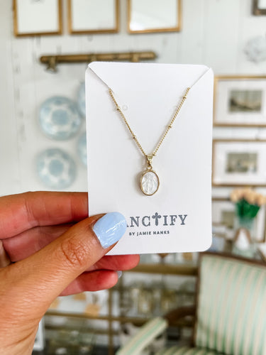 Itty Bitty Mother of Pearl Immaculate Mary Necklace-Sanctify by Jamie Hanks