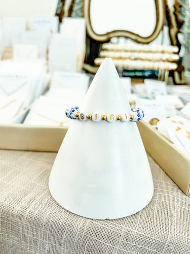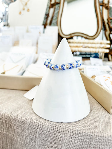Gigi Blue Porcelain Beads Gold-Megan Benoit’s Closet