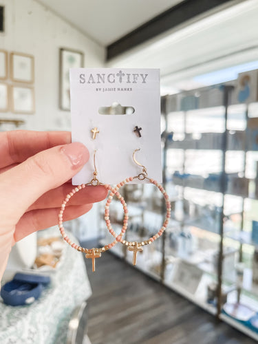 Pink Cross Hoops and Cross Set-Sanctify by Jamie Hanks