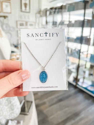 Light Blue Silver Miraculous Mary Necklace-Sanctify by Jamie Hanks