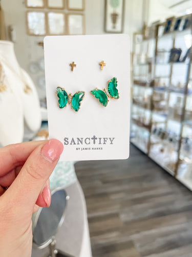 Green Cross Butterfly Earring Set-Sanctify by Jamie Hanks