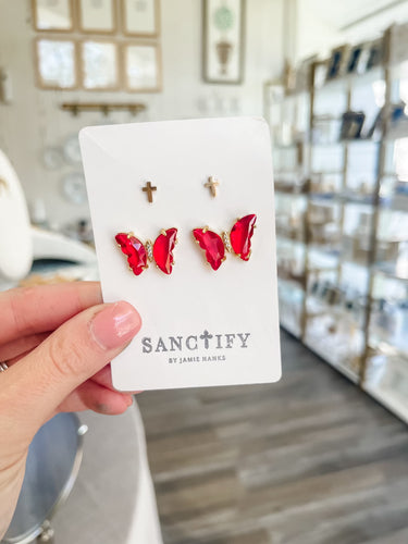 Red Cross Butterfly Earring Set-Sanctify by Jamie Hanks