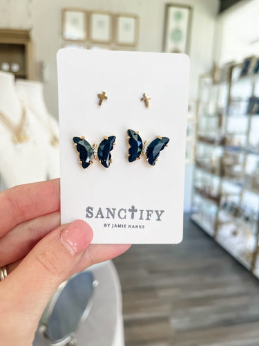 Black Cross Butterfly Earring Set-Sanctify by Jamie Hanks