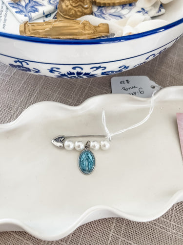 Silver heart pin with light blue mary and pearls- The Gilded Mosquito by Lisa Leger