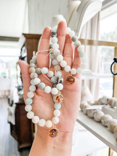 Beaded stretch bracelet with multi flower charm- Prairie Press Designs