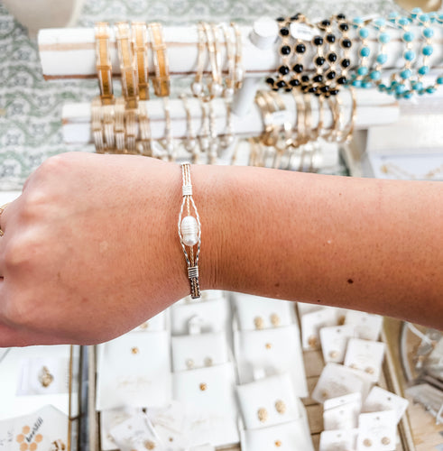 2 silver twist w/ gold twist middle Single pearl -Q’s Jewelry Design
