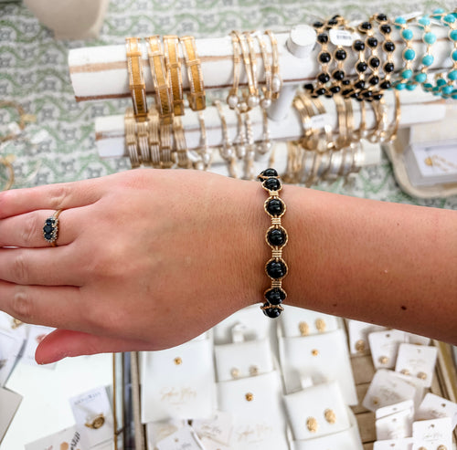 Full black onyx 8mm all gold 2 twist w/flat middle - Q’s Jewelry Design