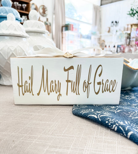 “Hail Mary Full of Grace” on wood + medal - Christina Yeager Designs