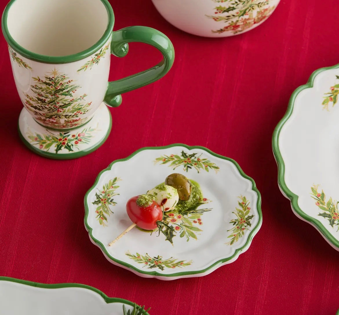 Set of 4 Holly Tree Melamine- 6in Canape Plates Gift - KOF
